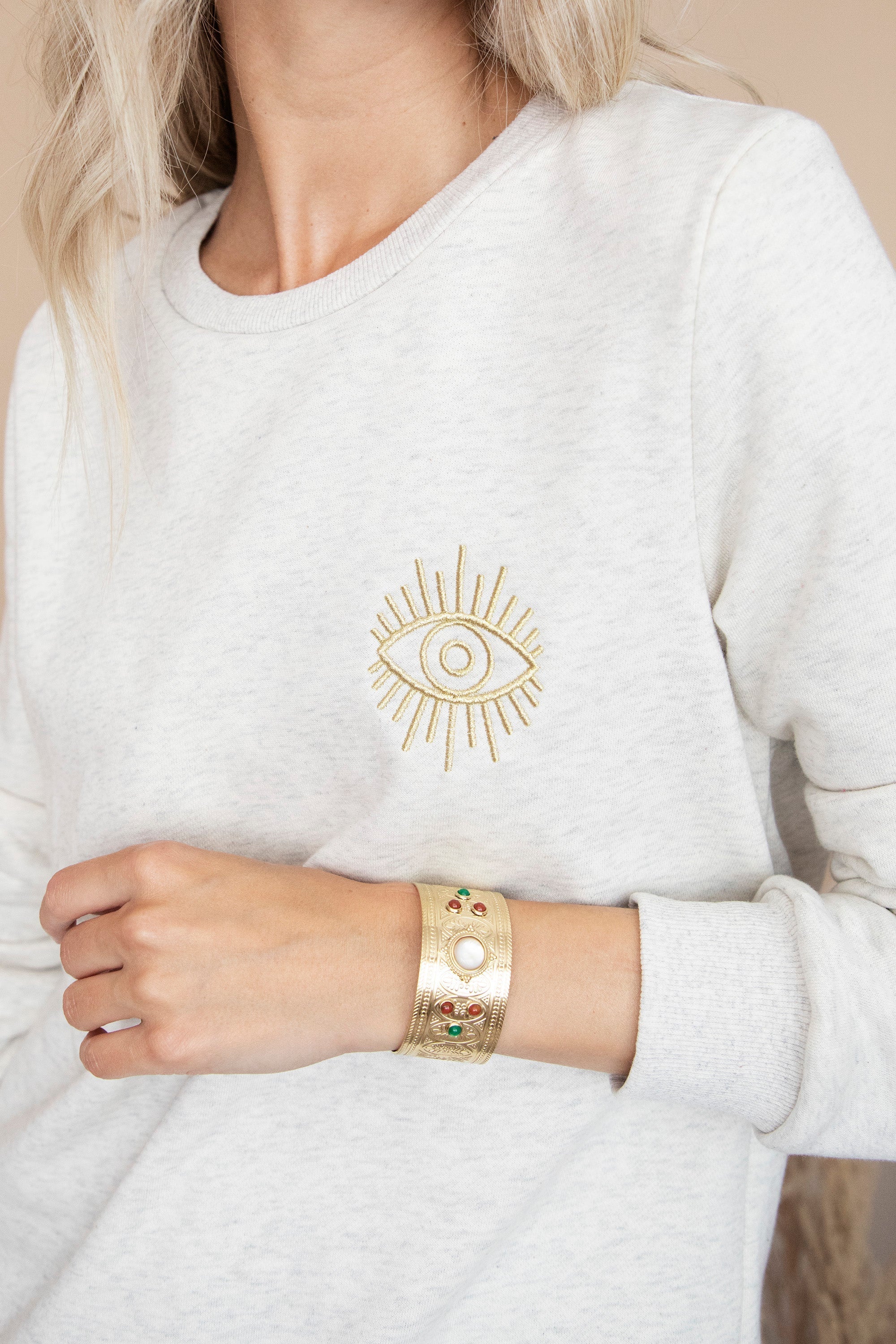 Alle ogen zijn op jouw gericht met deze super leuke sweater aan! De eyecatcher? Het gouden oogje aan de linkerbovenkant van je sweater! 👁 Your third eye! 😏