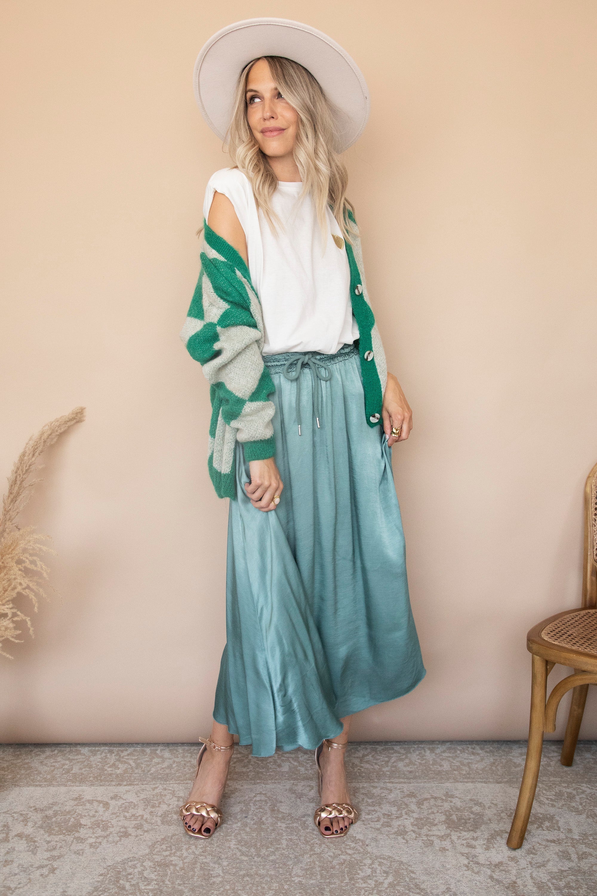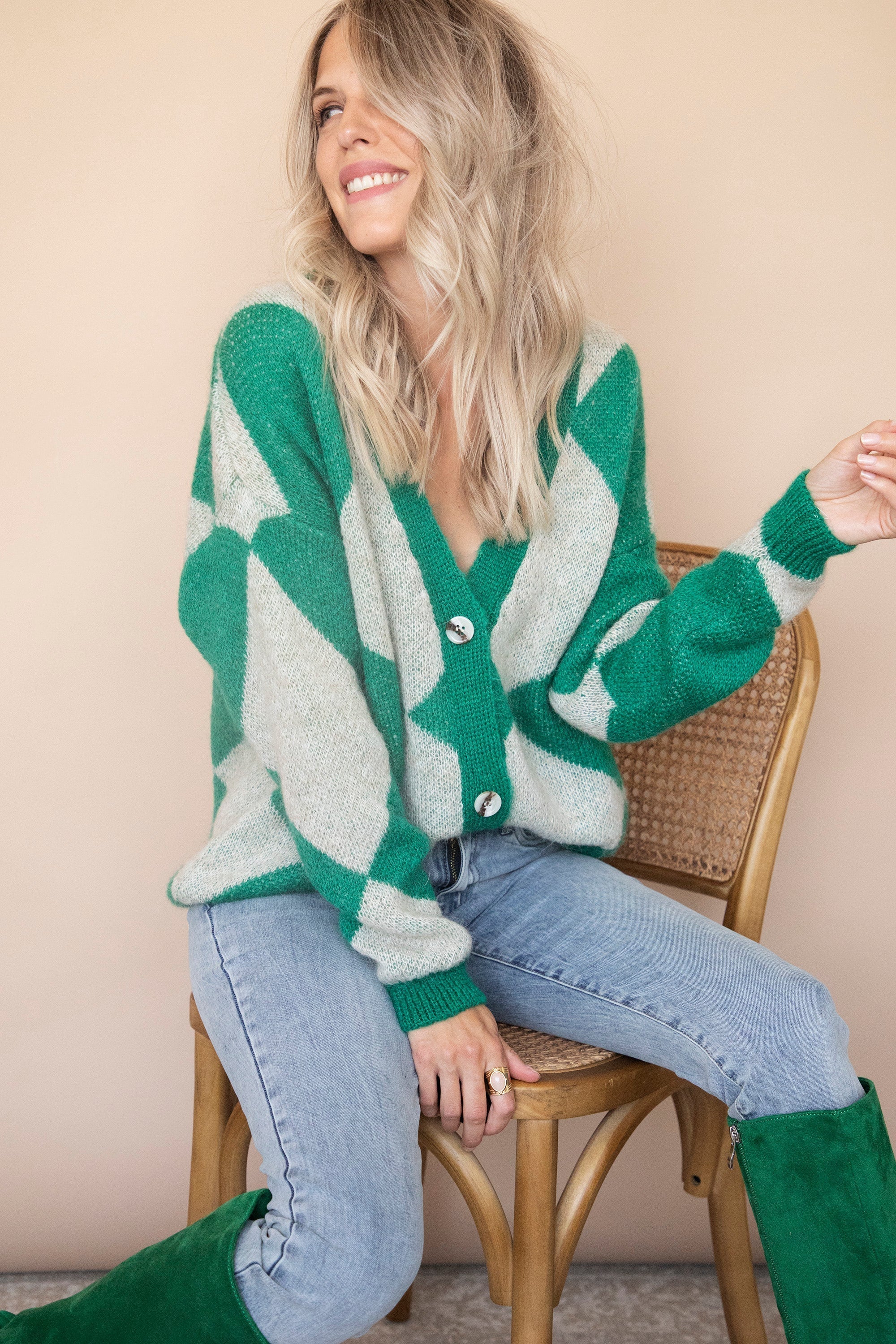 Dit vest combineert beige en groene squares! Een echte outfit booster 🤩