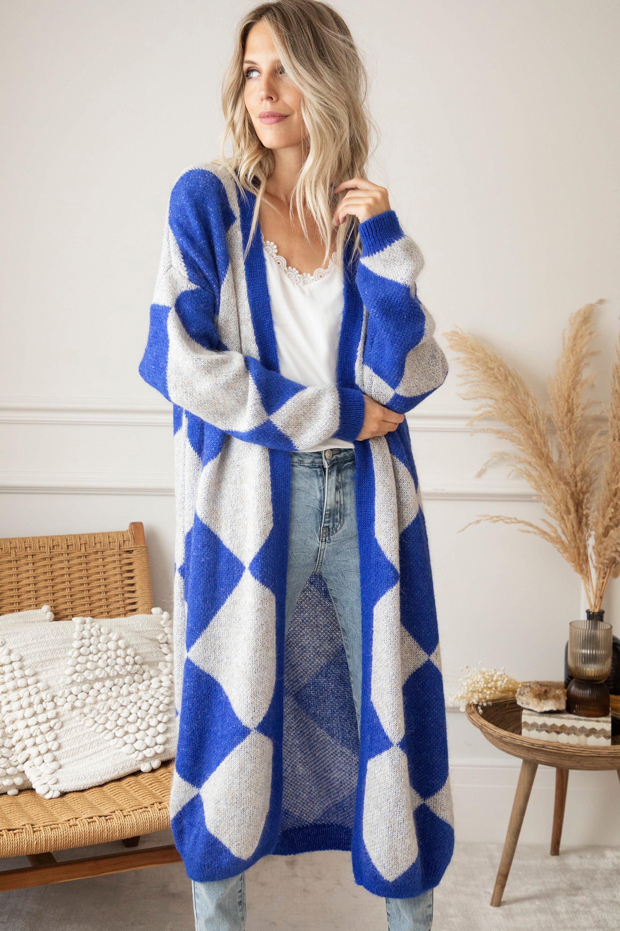 Dit vest combineert beige en blauwe squares! Een super mooie combinatie! 😍
