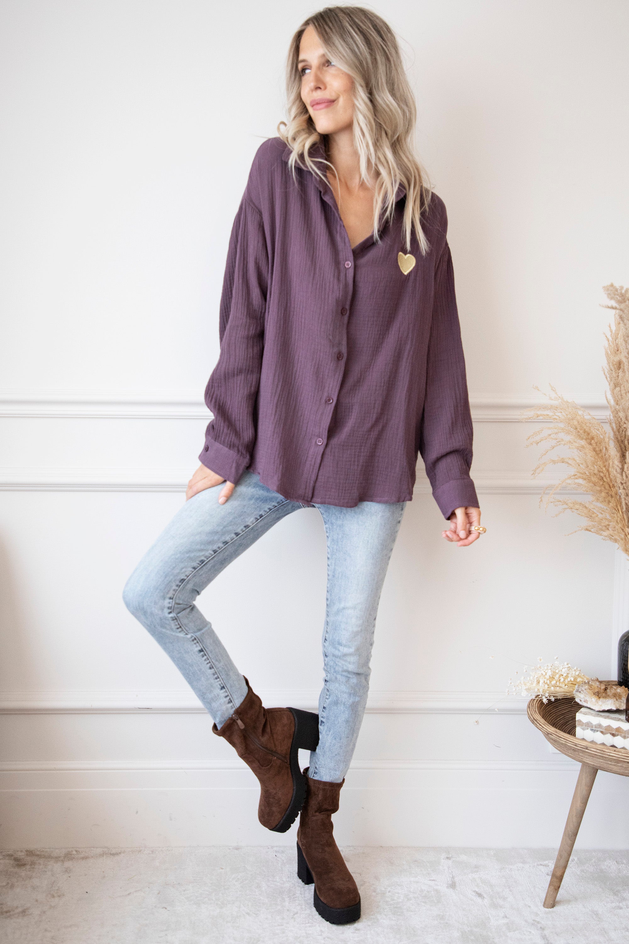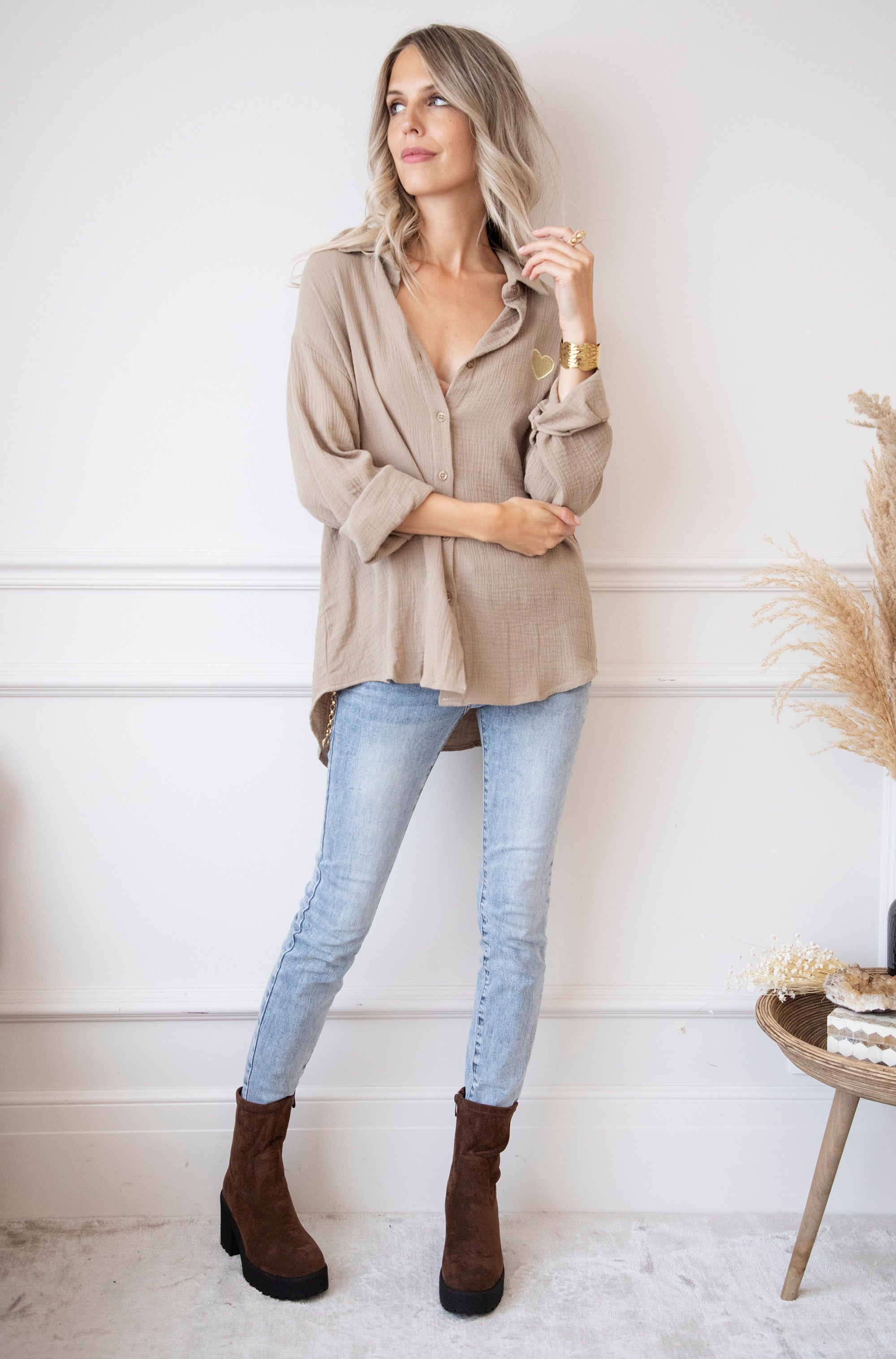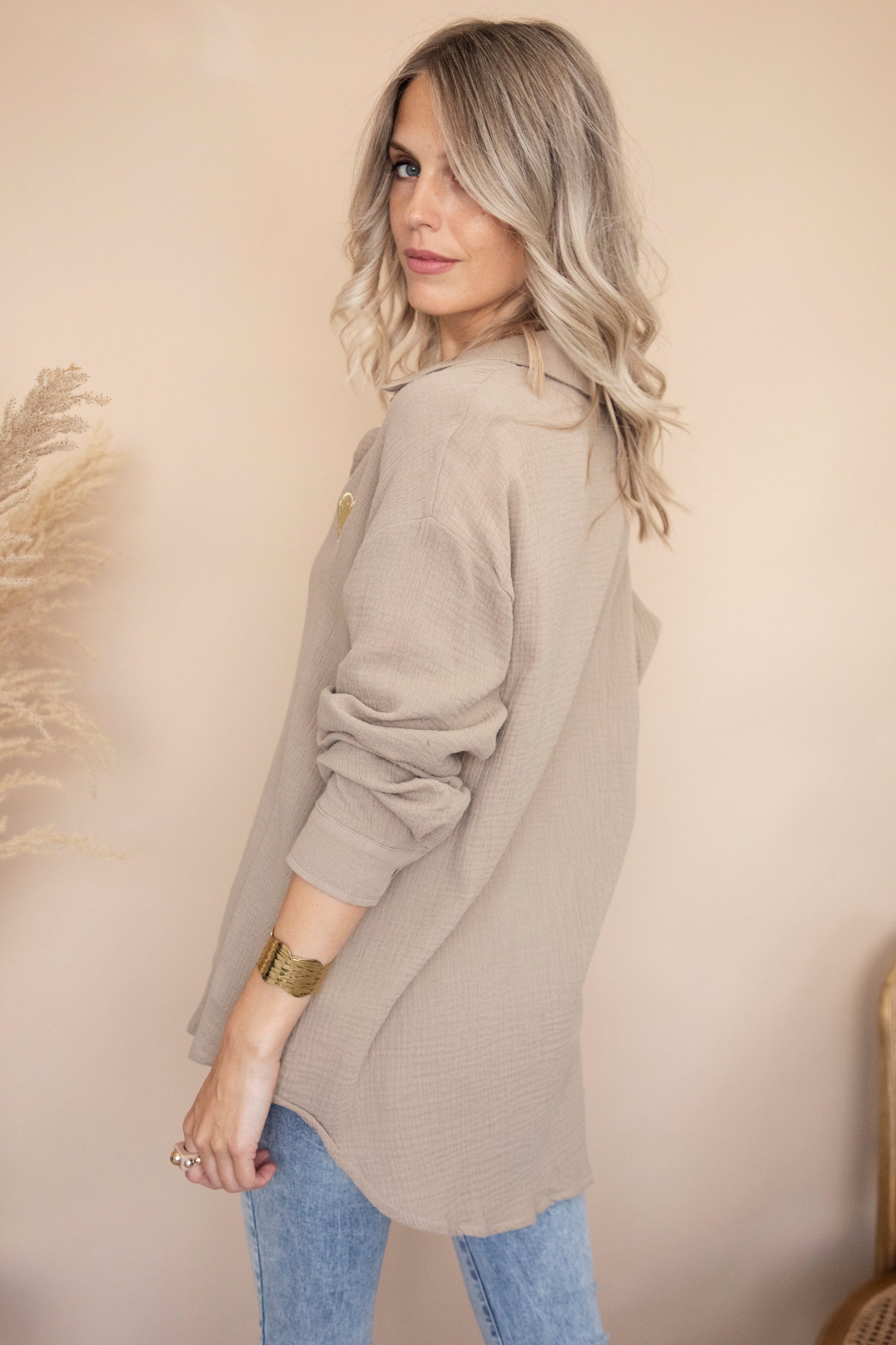 Links werd er een cute gouden hartje geborduurd, een klein detail dat deze basic blouse een classy & lovely update geeft 🤍