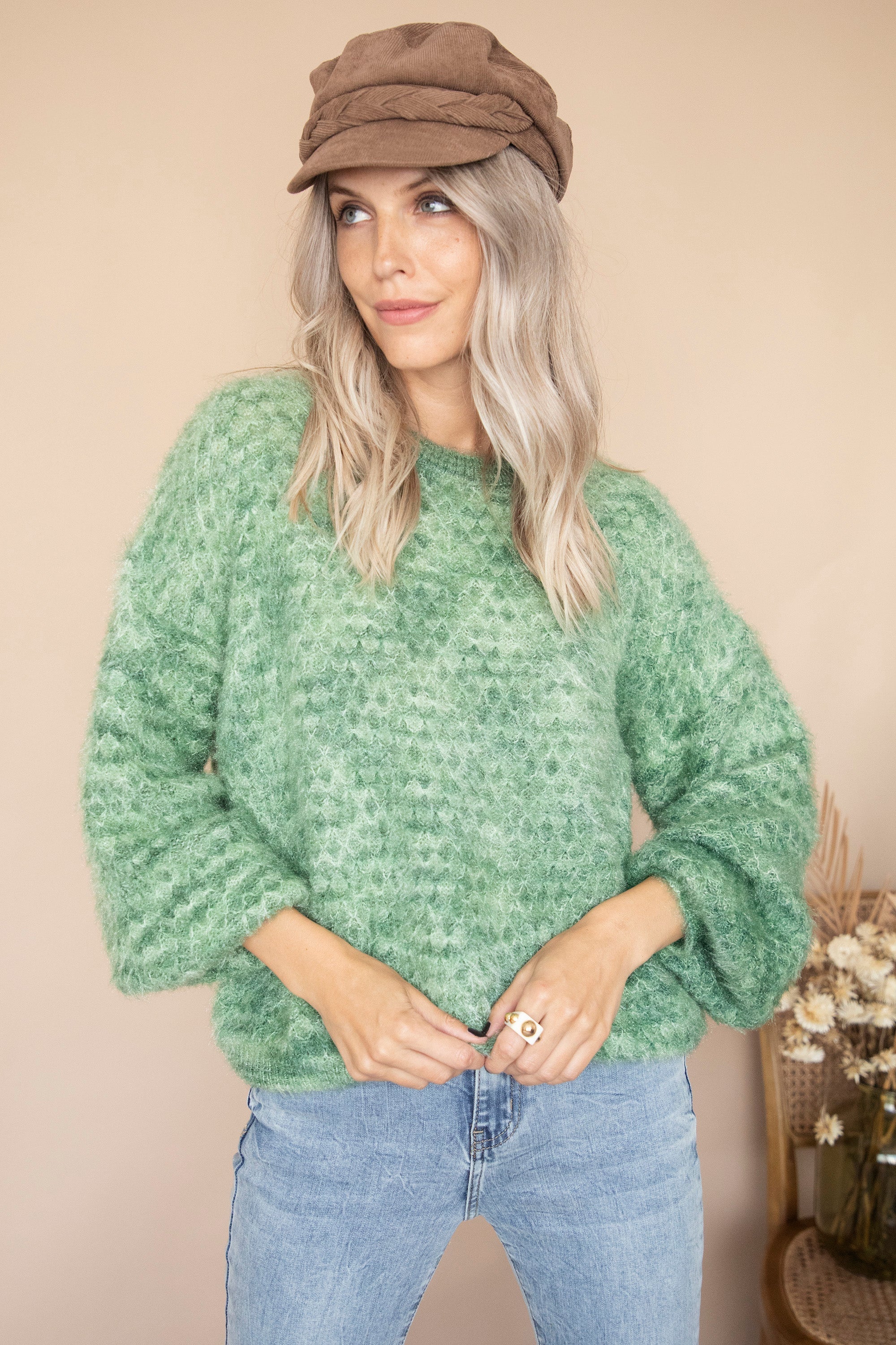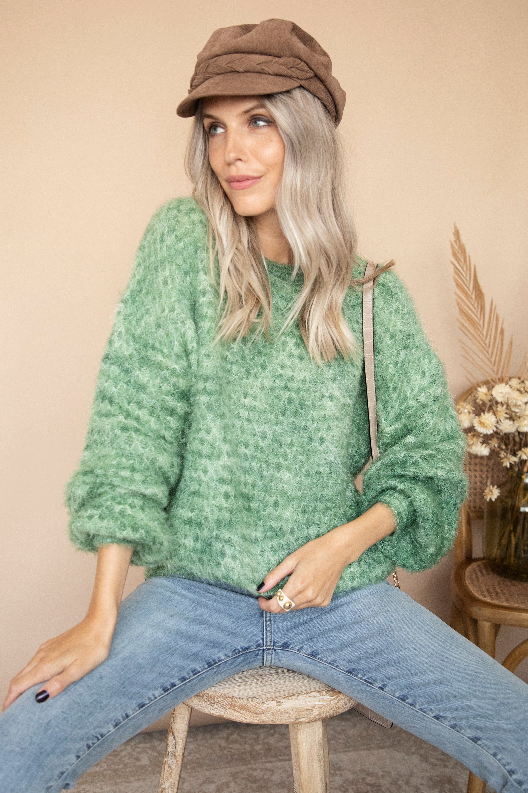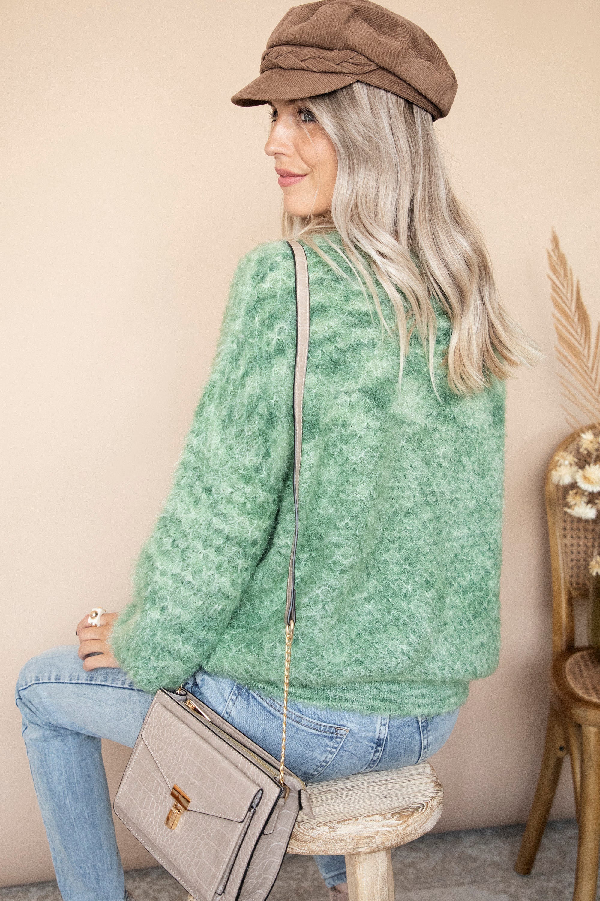 De stof bestaat uit een mix van groene tinten 💚🤍 Good to know: Het patroon is uniek en kan per trui verschillen! 🎀