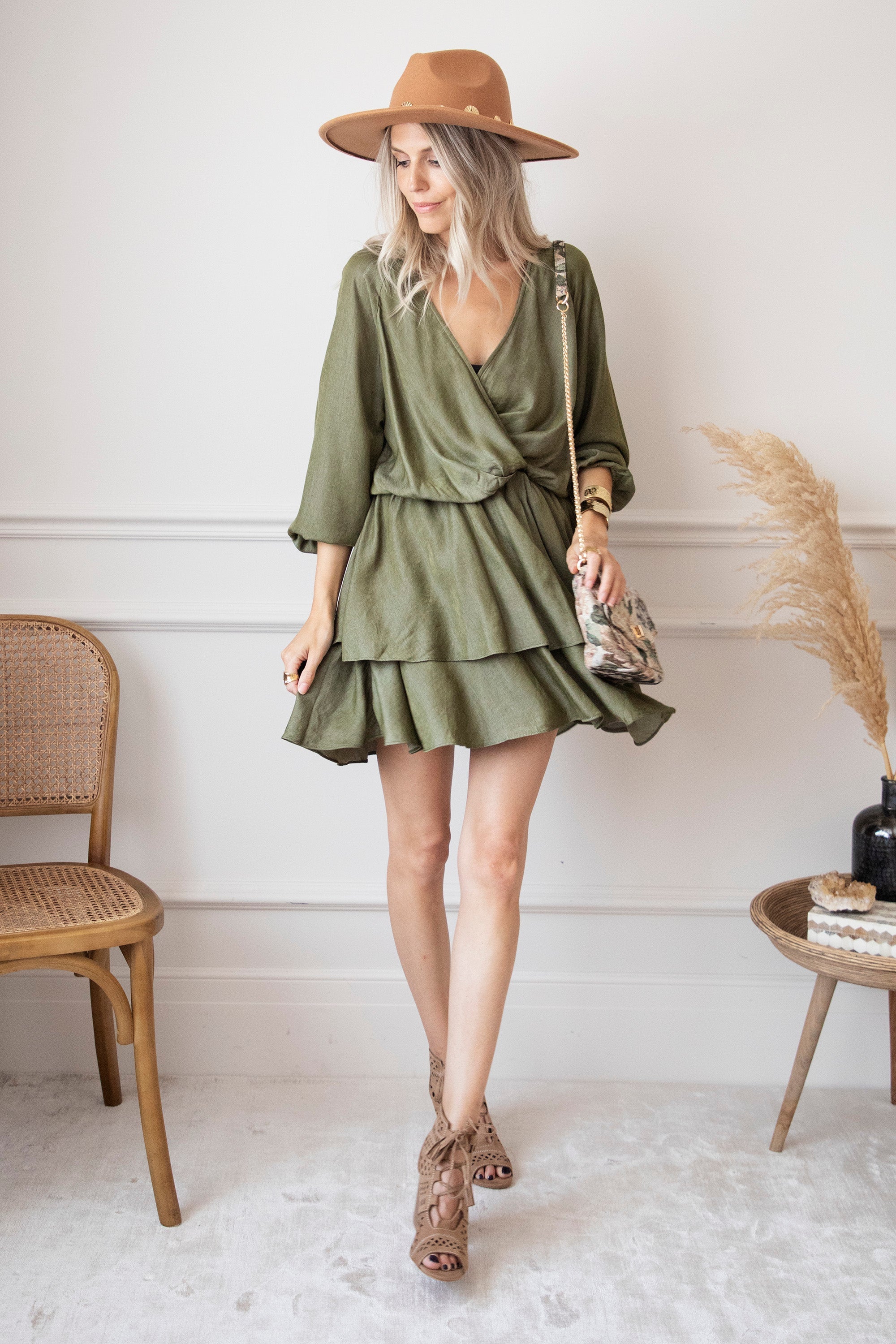 Door de lange mouwtjes kan je de jurk gemakkelijk in het najaar dragen met een paar camel cut-out boots of heels onder! Een tasje bij en een hoed op om je look in stijl af te werken 🤩