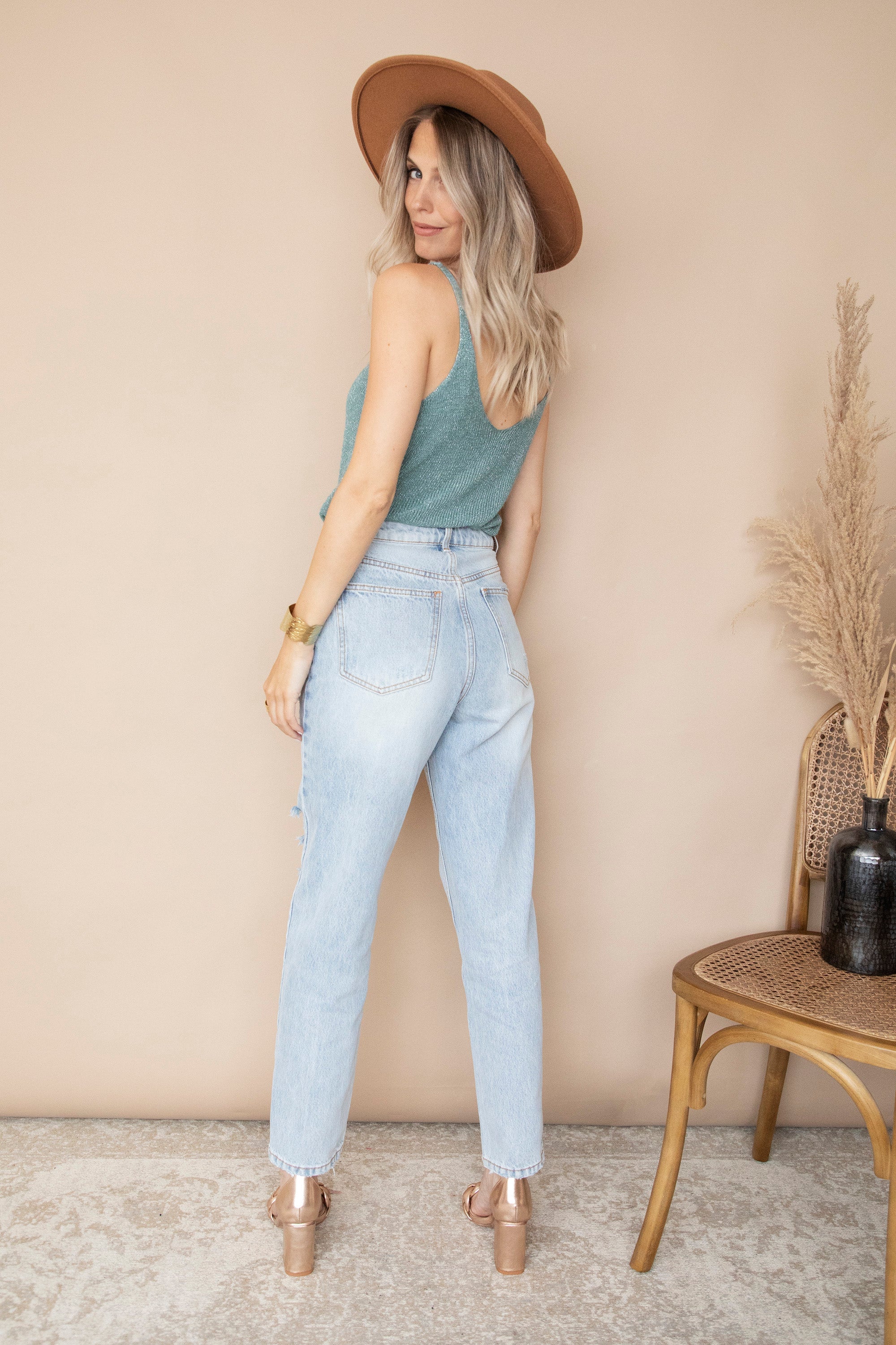 Ripped Detail Mom is een fijne basic met toch een stoer kantje dankzij gescheurde accenten hier en daar! De broek heeft een lichte jeanskleur met afgewassen details! Samen met de gescheurde accenten geef je je look meteen een edgy touch 🎀